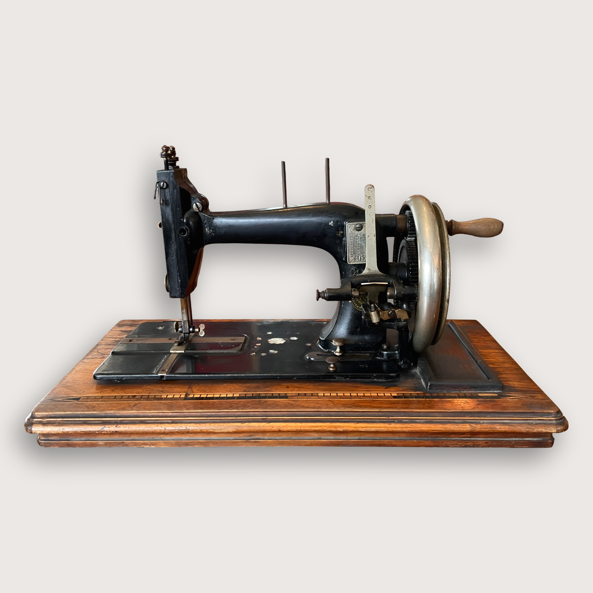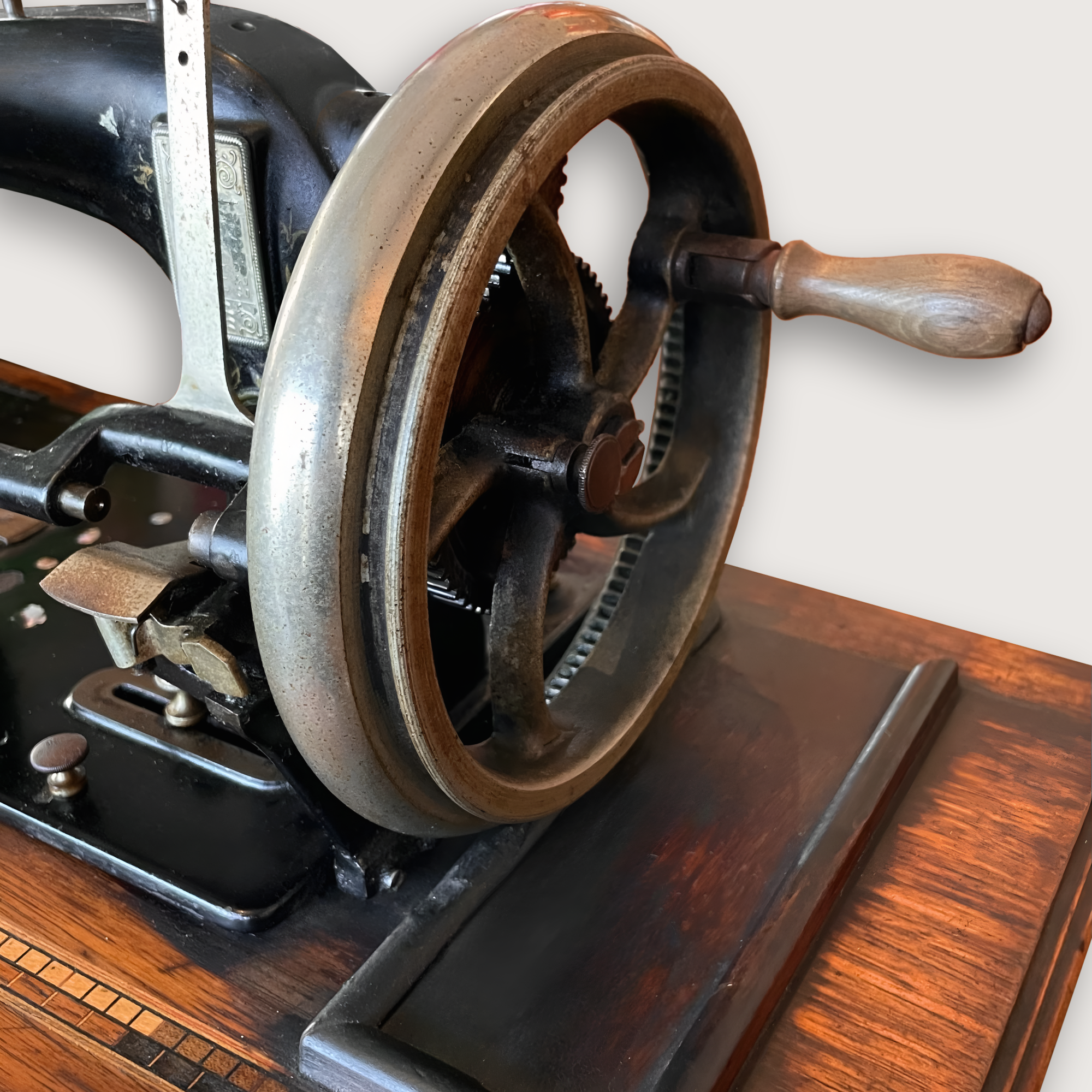 Durante finales del siglo XIX y comienzos del XX, las máquinas de coser accionadas por manivela marcaron una transición fundamental en la costura doméstica. Su funcionamiento manual ofrecía un control preciso de la puntada y una relación directa entre la mano y el mecanismo, convirtiendo cada costura en un ejercicio de técnica y oficio.