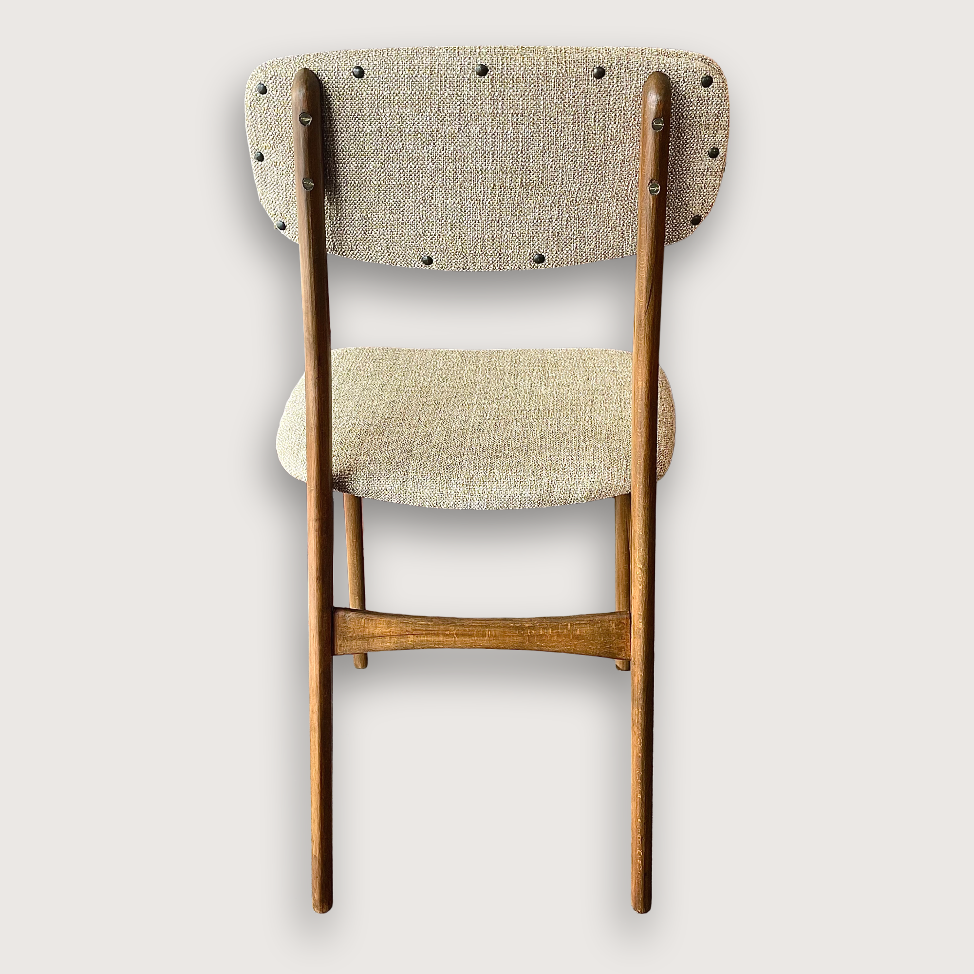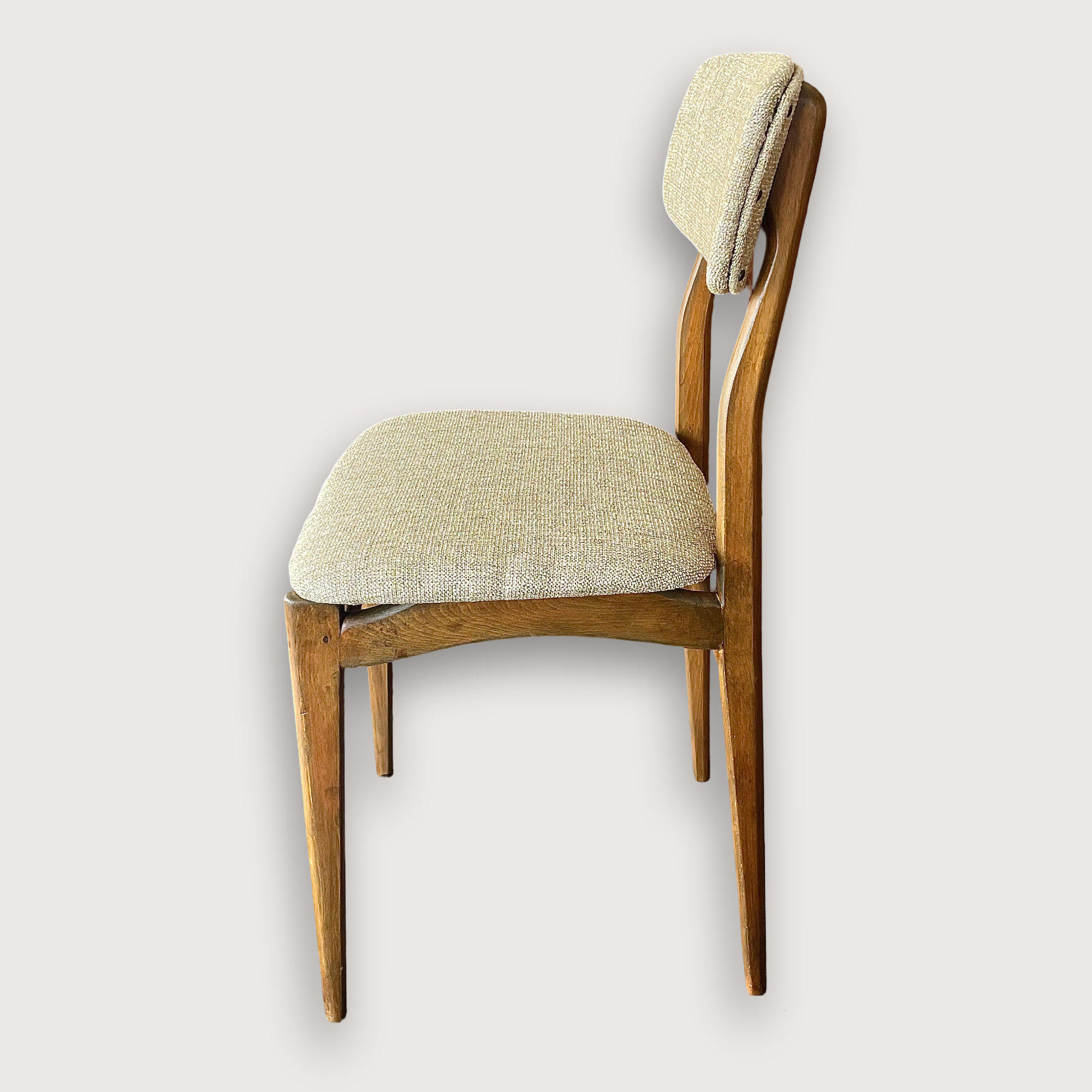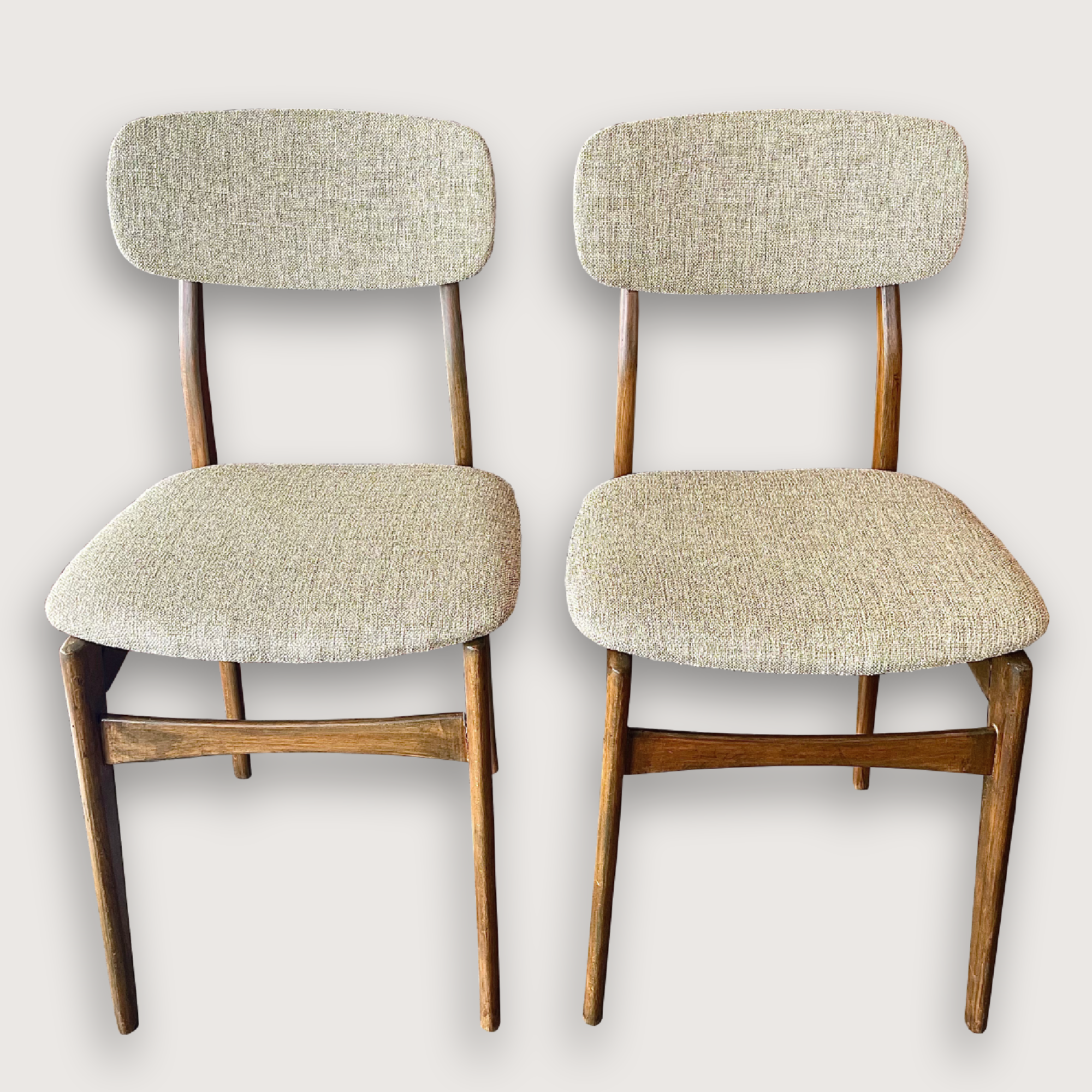 En este tipo de diseño, cada curva responde a una intención: respaldos ligeramente inclinados y estructuras sutiles que brindan soporte sin perder ligereza visual. El tapizado en tela damasco, tradicionalmente asociado a tejidos de mayor elaboración y elegancia, aporta una textura rica y un carácter decorativo discreto que contrasta suavemente con la calidez de la madera. Este equilibrio entre sobriedad y detalle refuerza su carácter atemporal, convirtiéndolas en piezas versátiles tanto para comedores como para espacios contemporáneos que buscan un acento refinado.